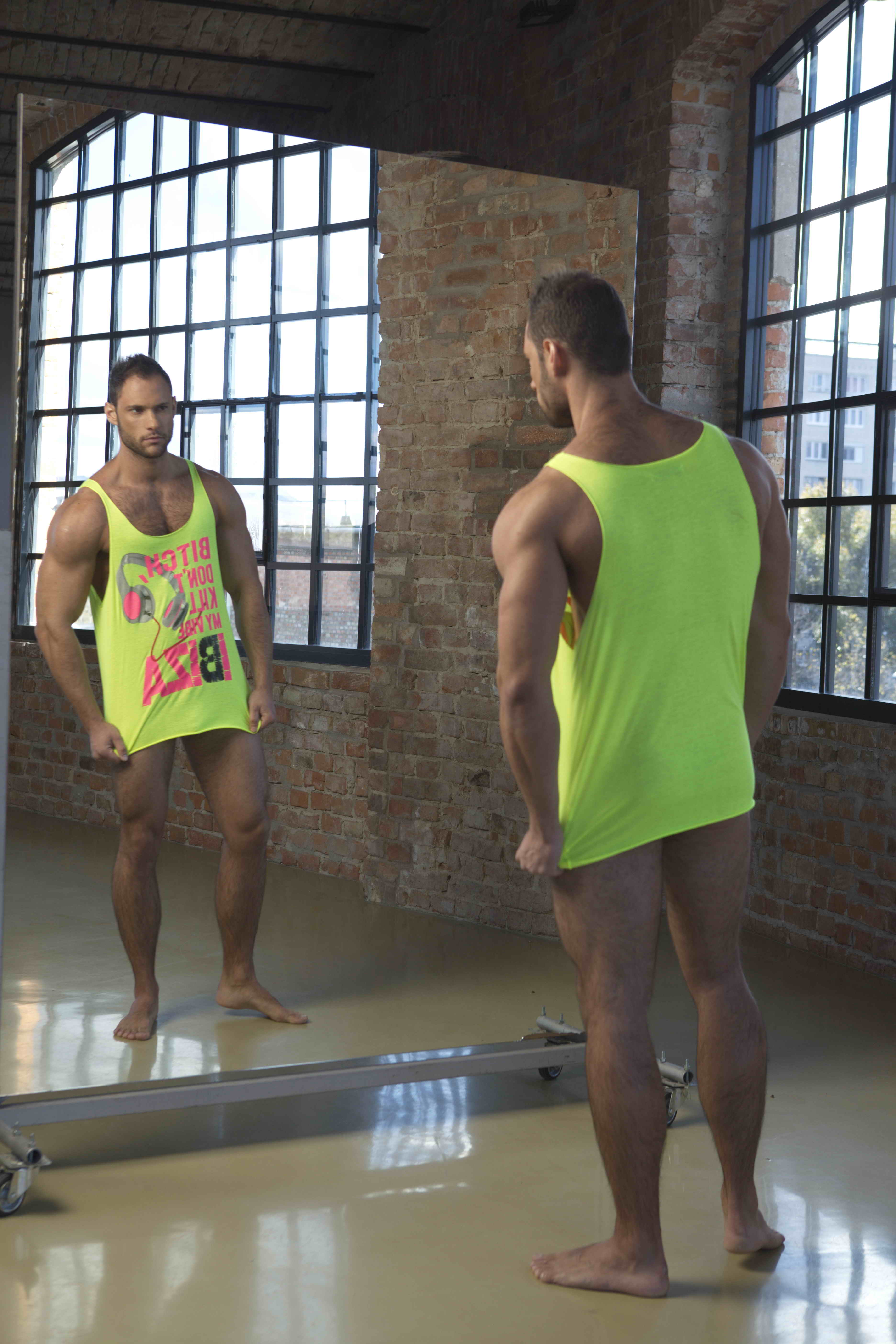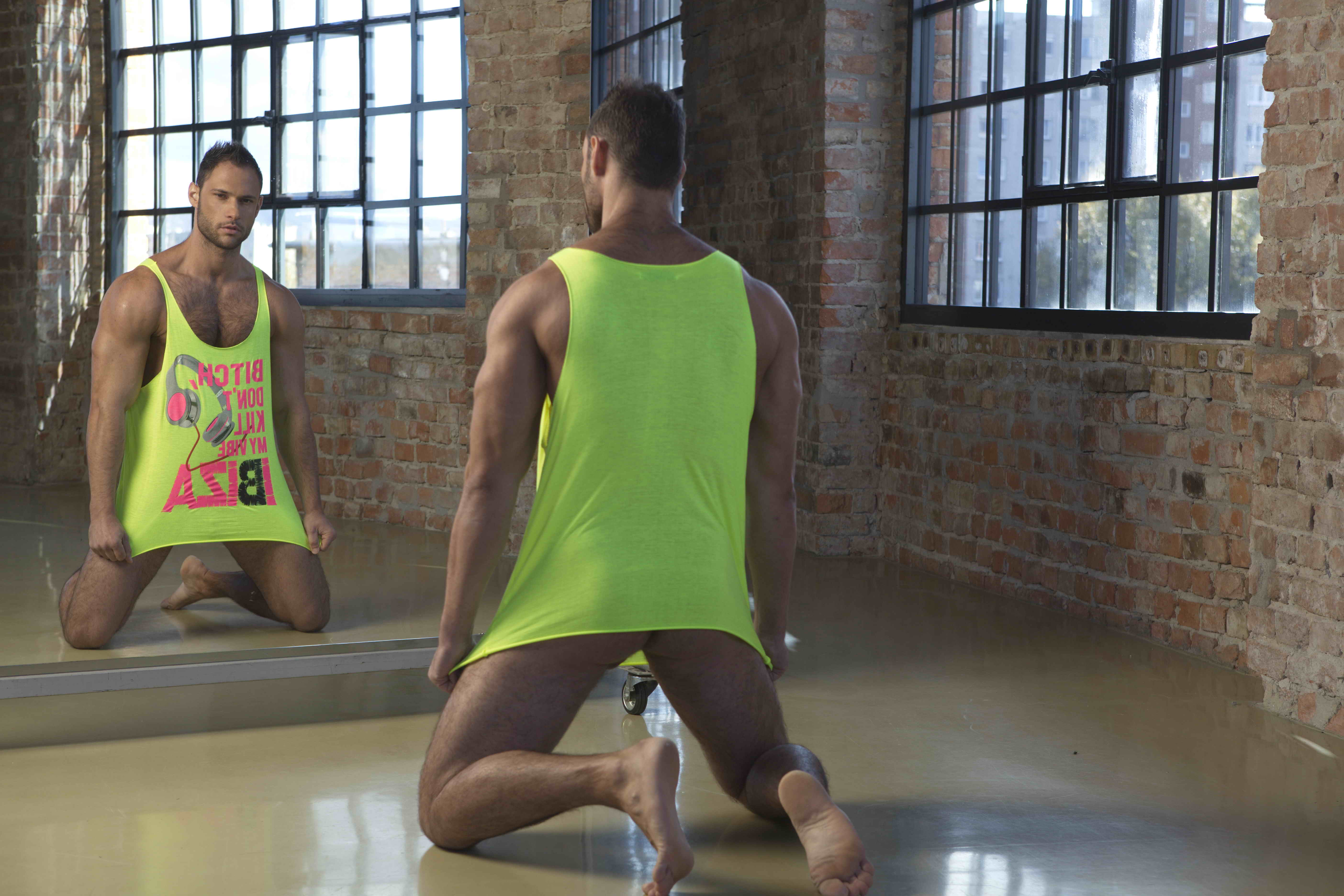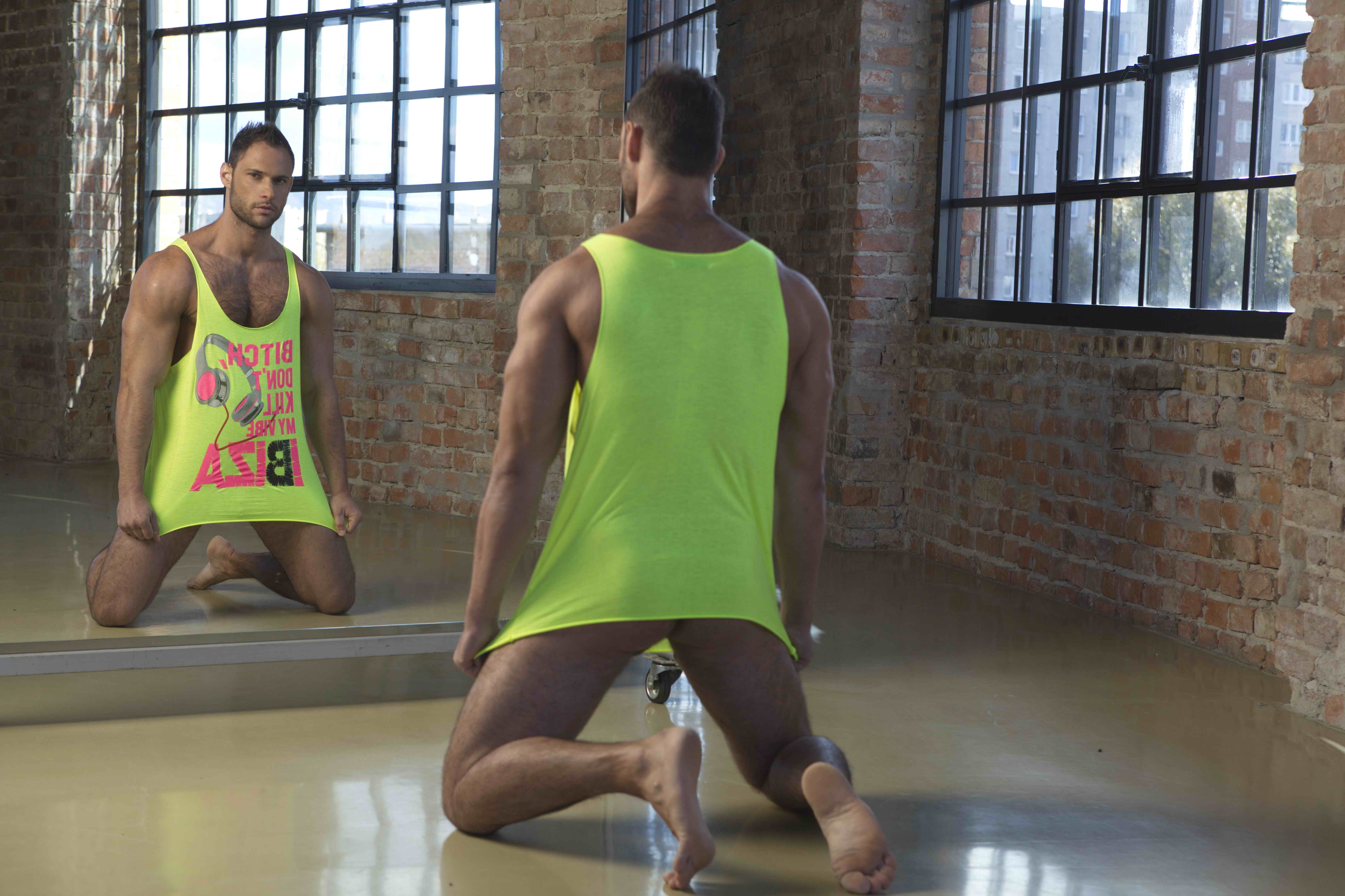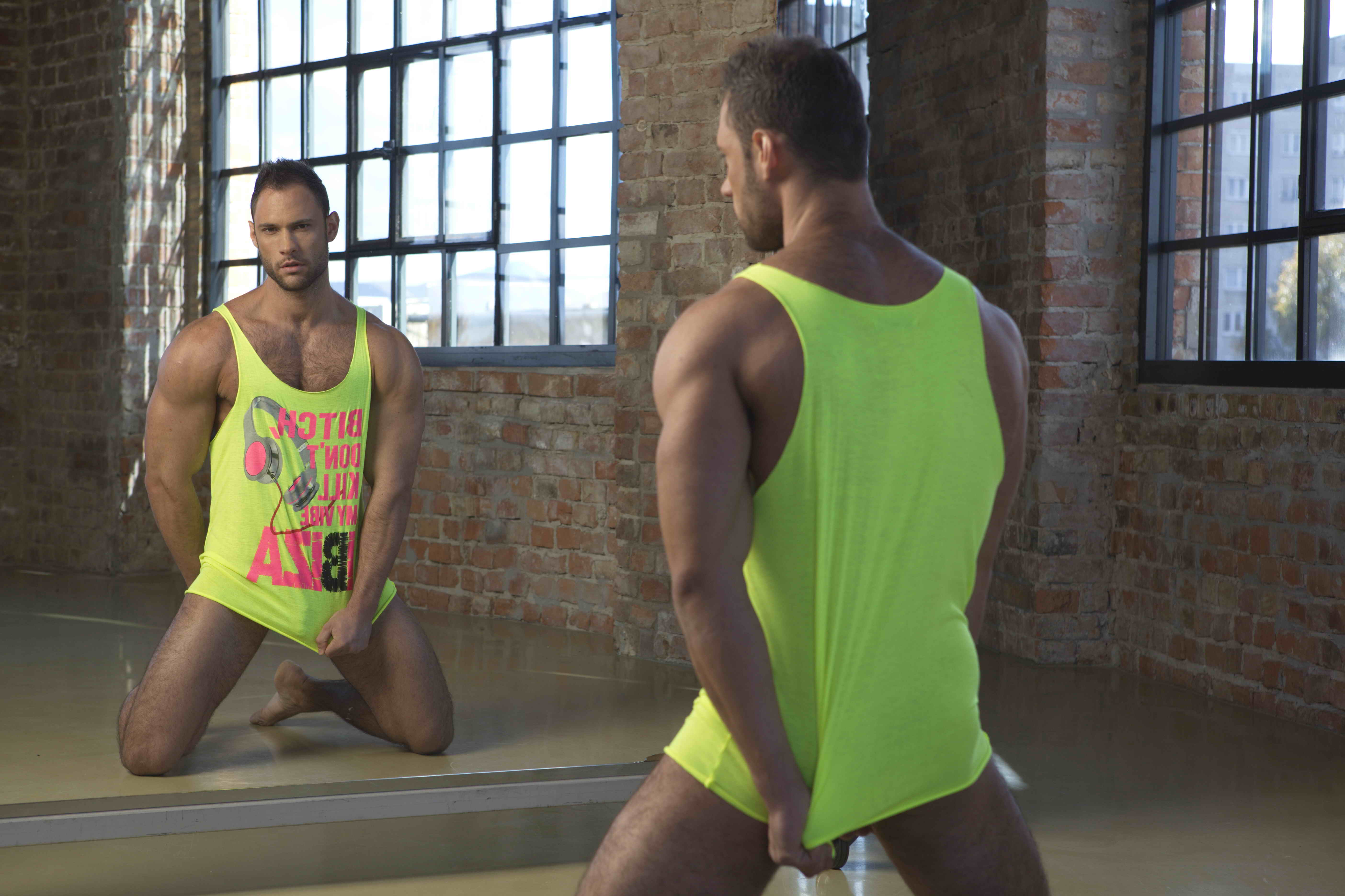 Cute muscle hunk David posing in gym