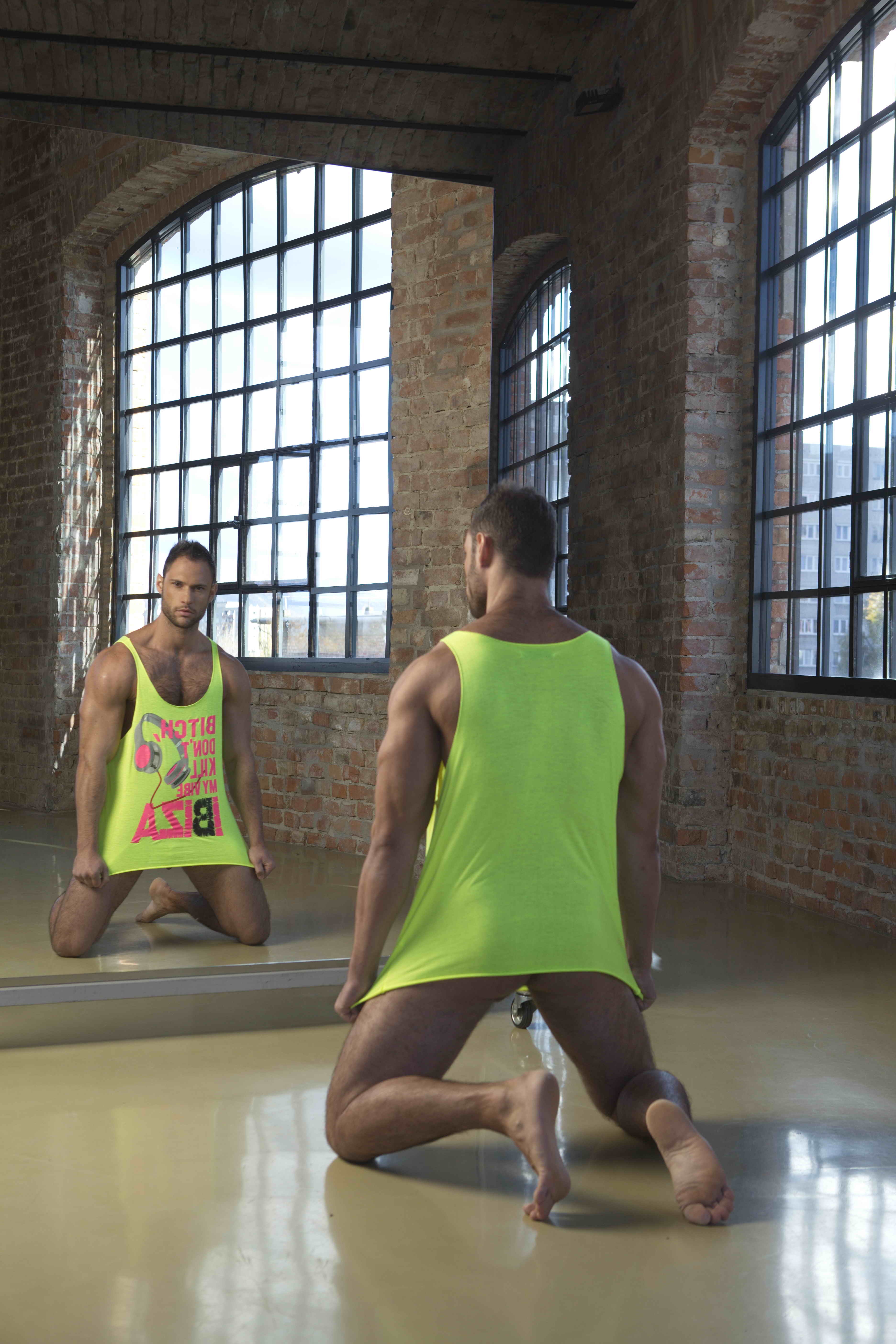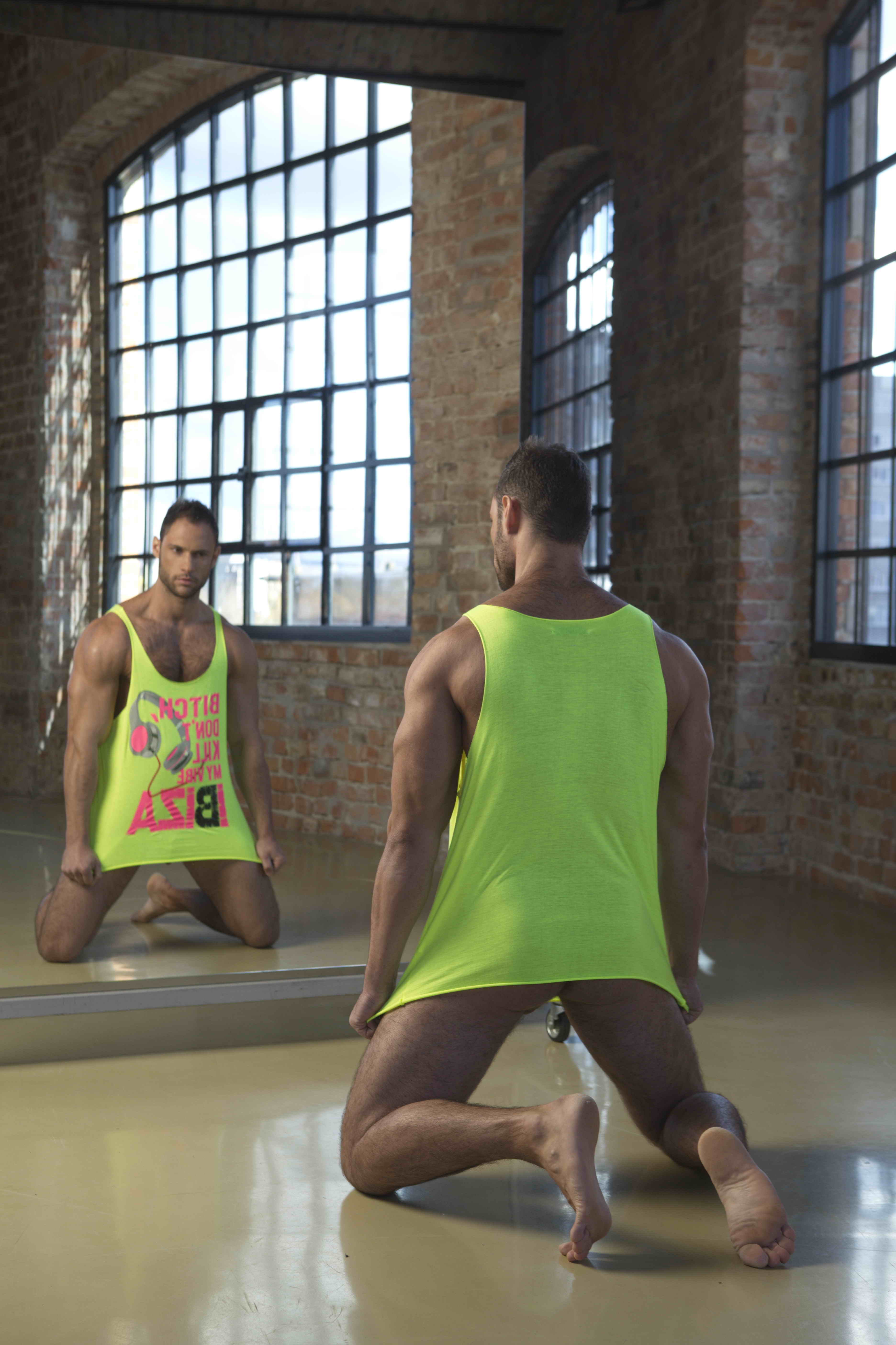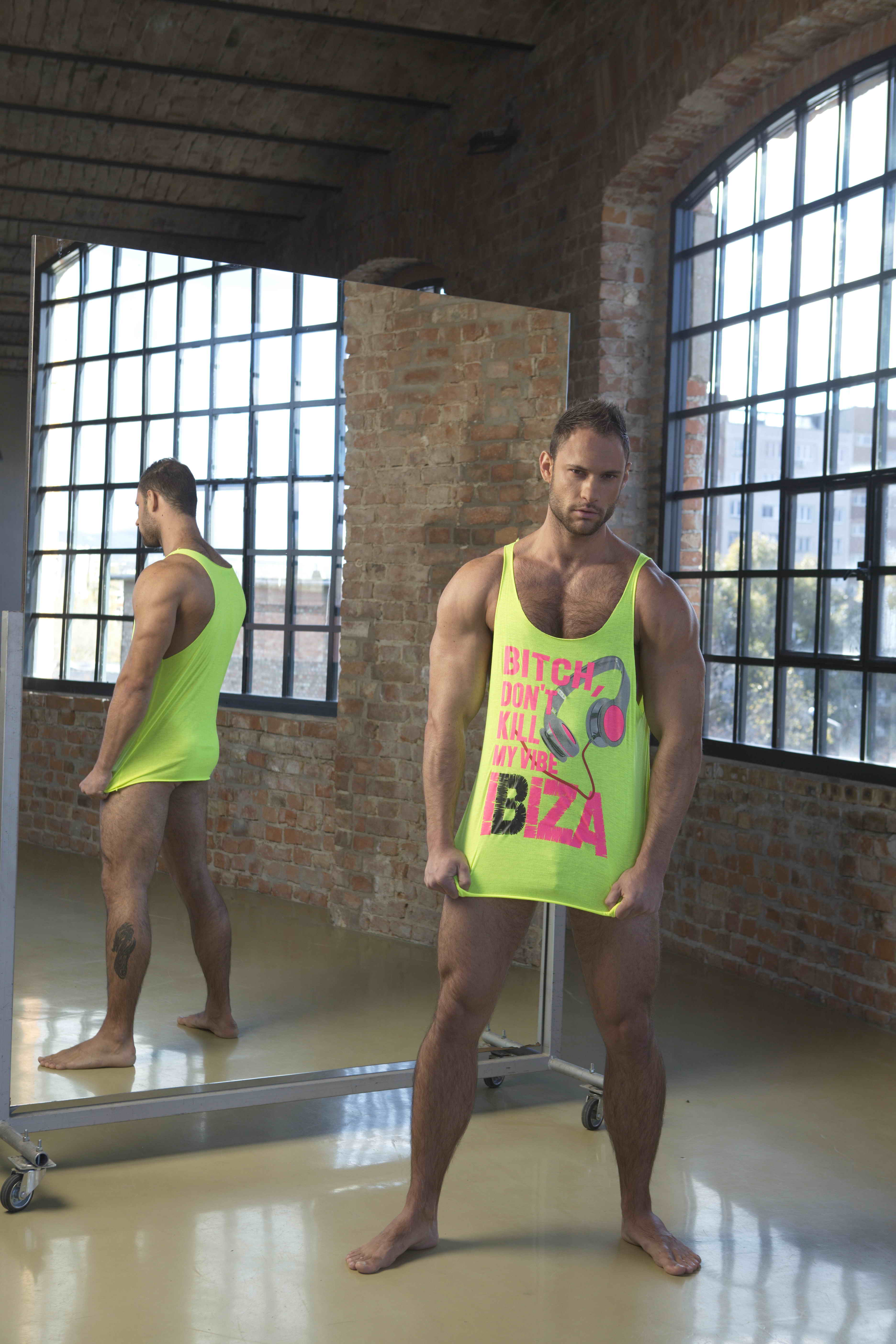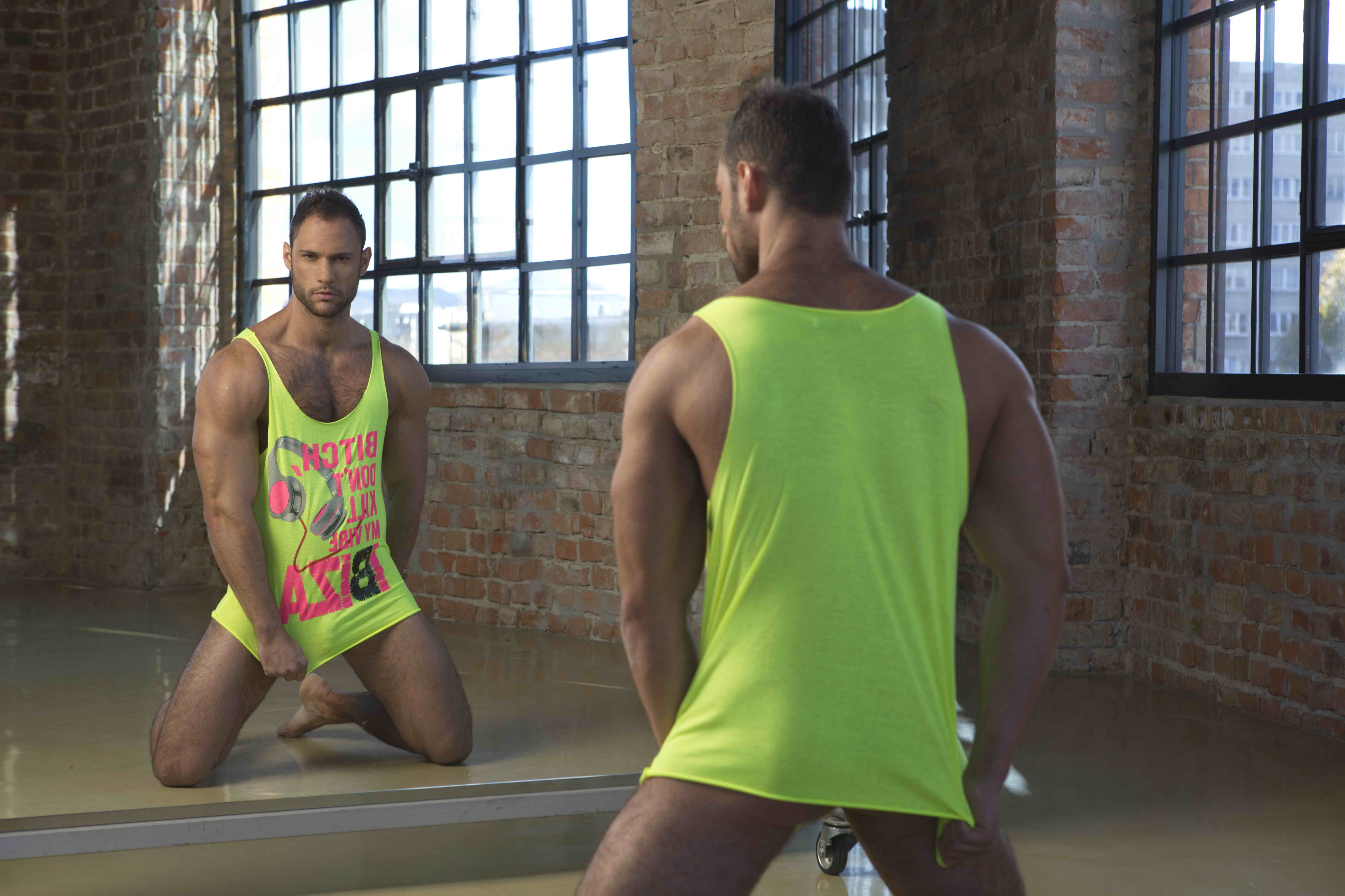 Cute muscle hunk David posing in gym