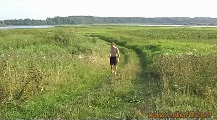Cute friend Mike jerking off in the meadow