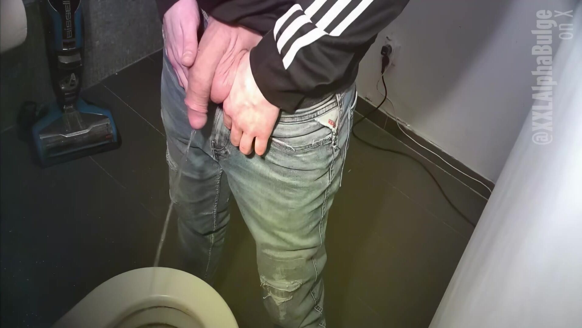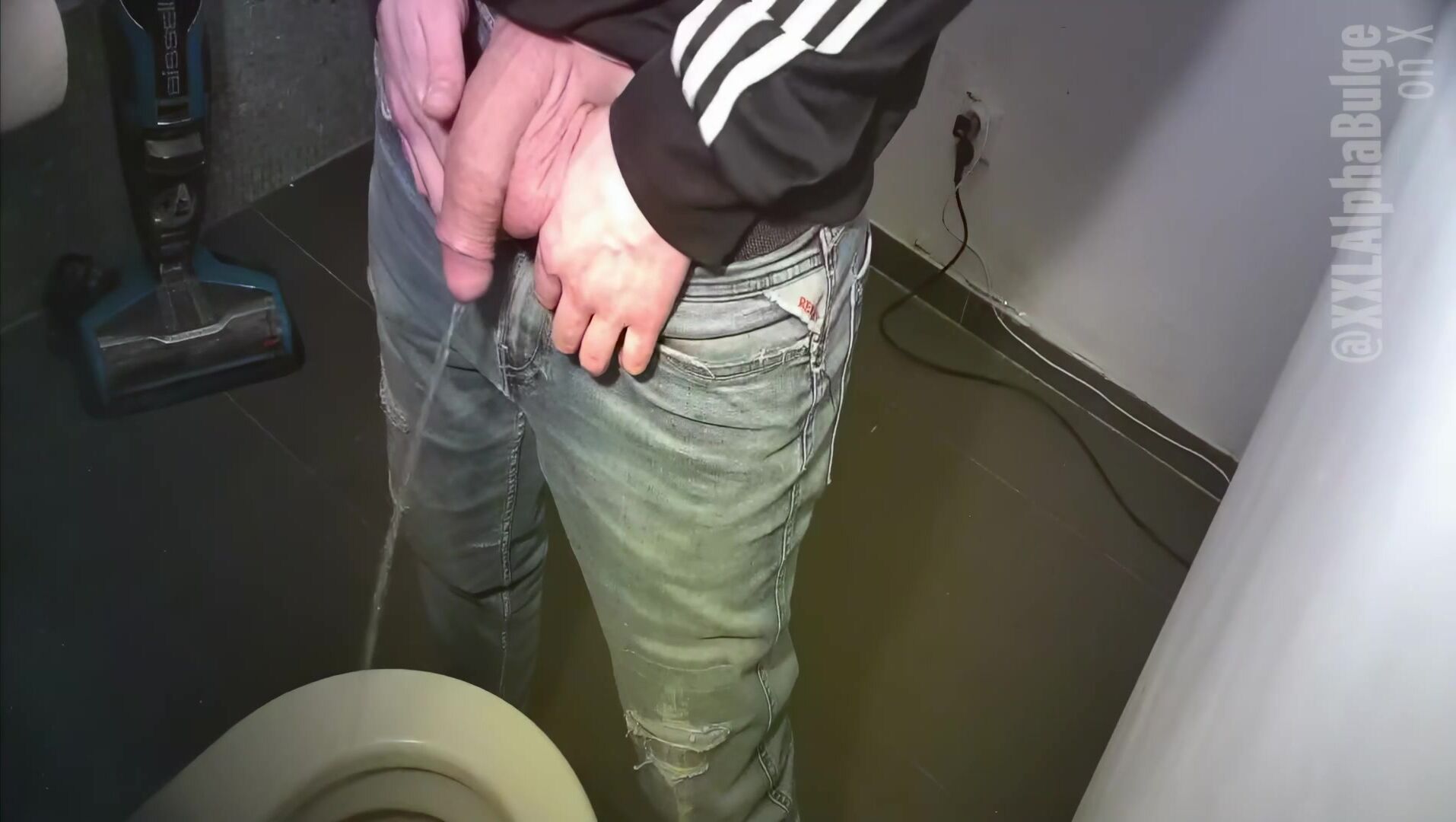 Horse-cocked XXLAlphaStud giving us a perfect view on his super sized monster cock while pissing
